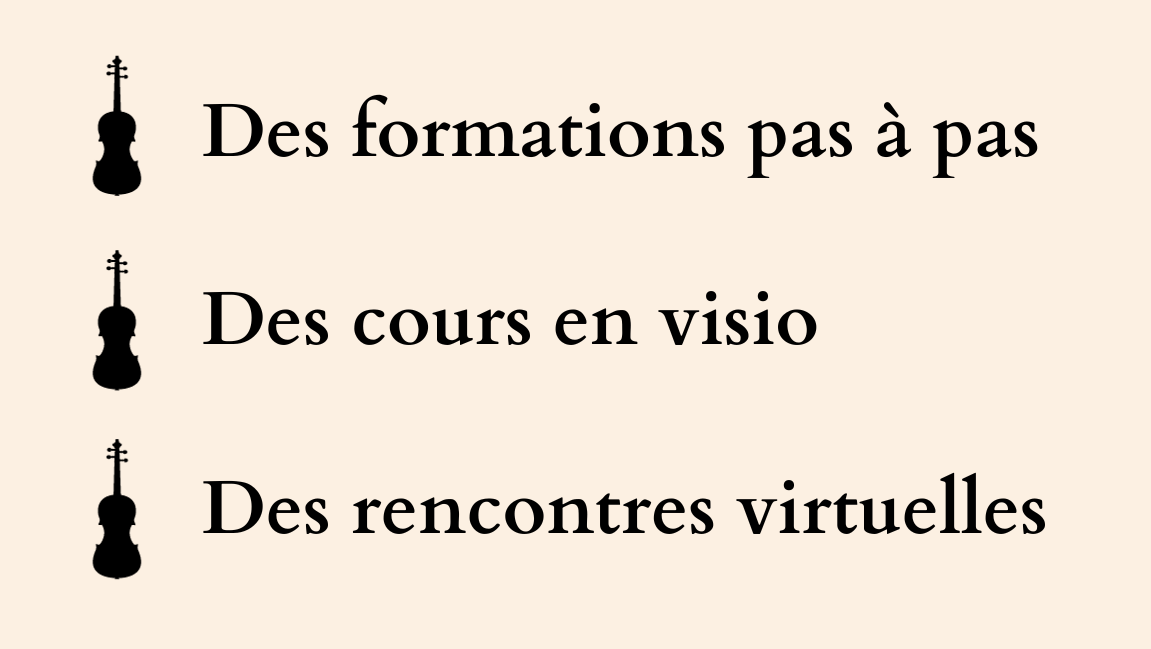 Apprendre, chacun à son rythme et son niveau, le violoncelle et découvrir le répertoire de ce magnifique instrument.